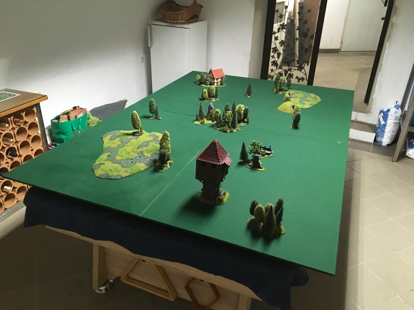 Es war 3000p Imperium (ich) gegen - zusammen - 1500p Dunkelelfen (der Chaos Freak) und 1500p Orks (sein MiniMe). Wir haben das Spielfeld relativ offen gelassen, damit der kleine ordentlich schießen kann mit seinen KM