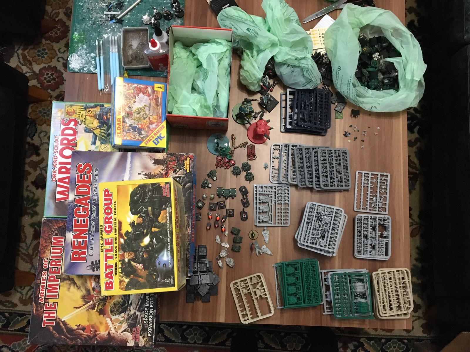 Wir haben zwar bis dato nur Fantasy gesammelt, aber ich hab einen guten Deal auf Space Marine (Epic 40k) bekommen, also hab ich zugeschlagen! Das braucht auch wenig Platz, von daher stört mich das nicht wirklich, dass so viel neues rein kam.