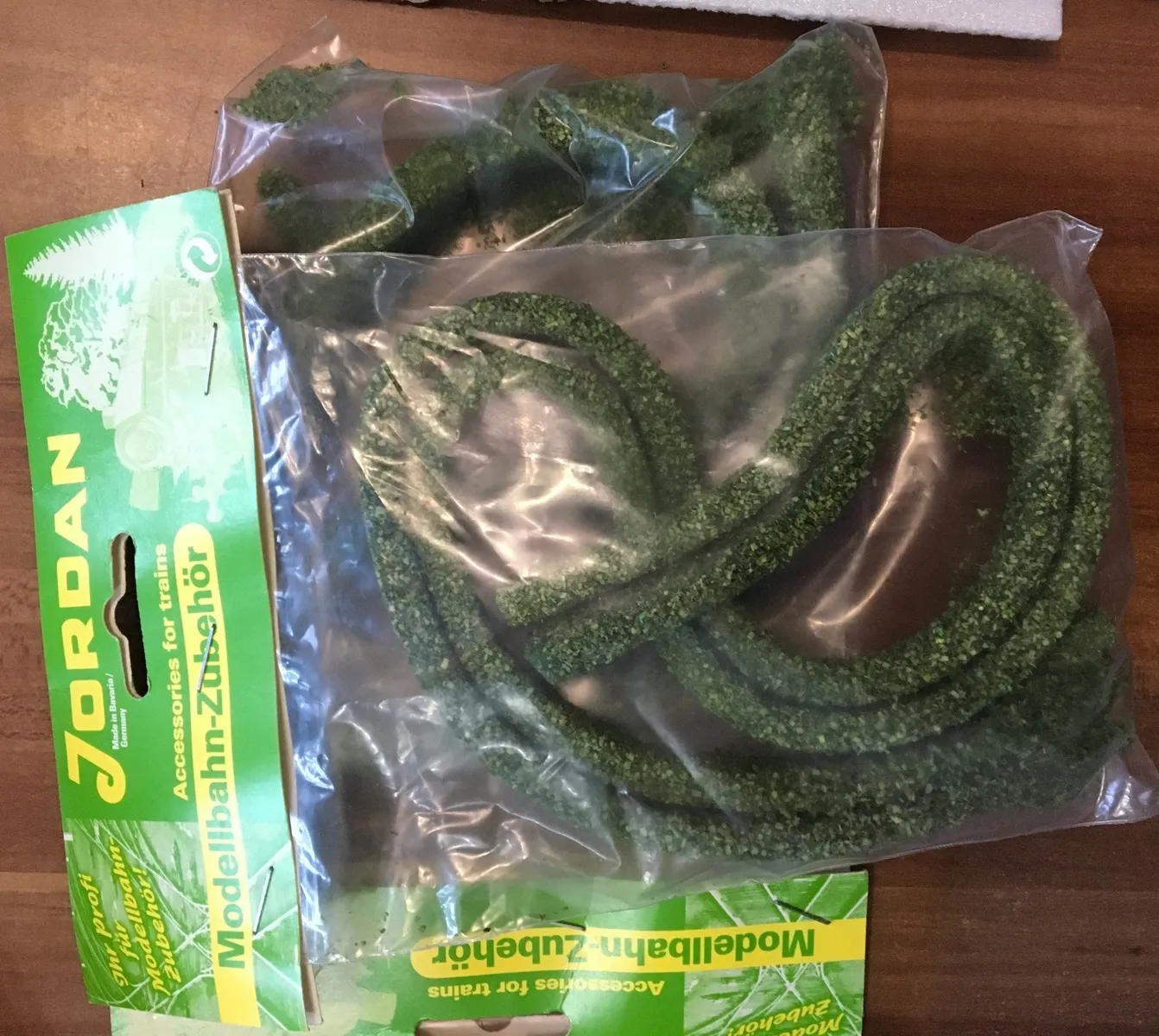 Ich hab vor etlichen Jahren mal Hecken gekauft, besser gesagt bestellt. Und wie das bei Modellbahnmaterialien so ist, kam eine böse Überraschung. Man sollte doch meinen, dass Leite die etliche 100,- für Merklin ausgeben, auch ne ordentliche Landschaft bauen wollen. Jedenfalls hier mein Elend
