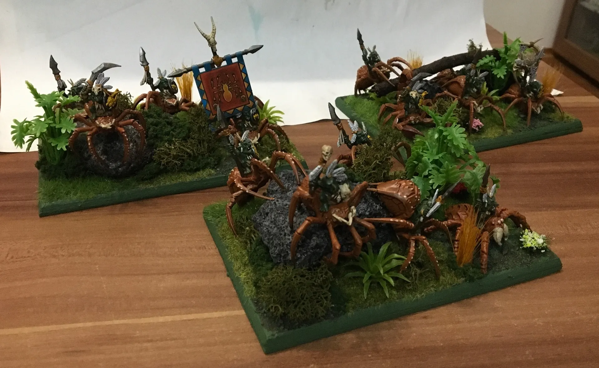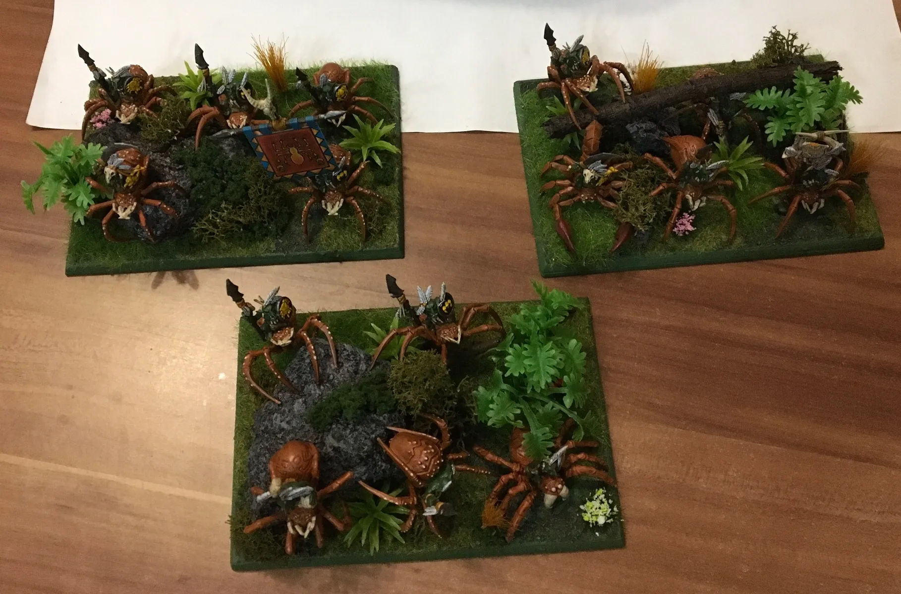 Ich hab die Woche meine Spinnenreiter fertig gemacht! Natürlich mit seeeeehr viel Buschwerk, immerhin sind es ja Waldgoblins! 👌