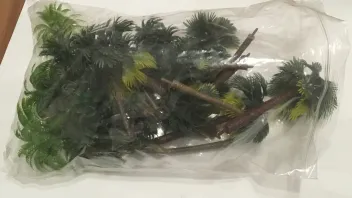 Bei den Sauruskriegern hatte ich leider zu wenige, also behalf ich mir mit Deko. Ich habe günstige Plastikpalmen gekauft, die ich abschneiden und als Farn und Gebüsch bei den Monstern und Kriegsmaschinen verwenden wollte. Ich dachte das passt zum Dschungelthema, also kamen die 2 Büsche rein. Ich wollte nicht nochmal Porto zahlen und auf 4 so kleine Kämpfer warten 😊