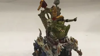 Ich hab versucht sie so gut wie möglich zu machen, aber meine Skills sind etwas beschränkt. Für das Gewicht hab ich Saurus-Schilde abgestempelt und diese Fratze an alle 4 Seiten geklebt. Damit der Hebel oben nicht so öd aussieht, hab ich versucht einen Echsenkopf darauf zu modellieren…