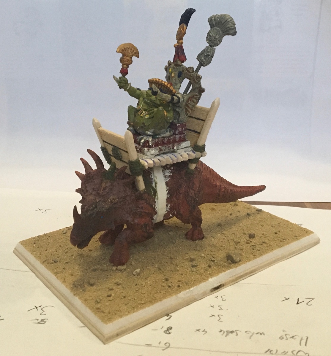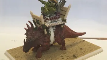 Der Stegadon für den Slann ist praktisch fertig. Ich hab bei der Howdah noch Seile und so dazu modelliert. Außerdem bekam sie einen Gurt um den Bauch. Ich wollte nicht zu viele Details dran machen, einfach um mich nicht darin zu verlieren. Meine Zeit ist - leider - begrenzt. Ich hab lediglich vergessen, das abgebrochene Horn am Nackenschild fertig zu machen, das muss ich noch nachholen!