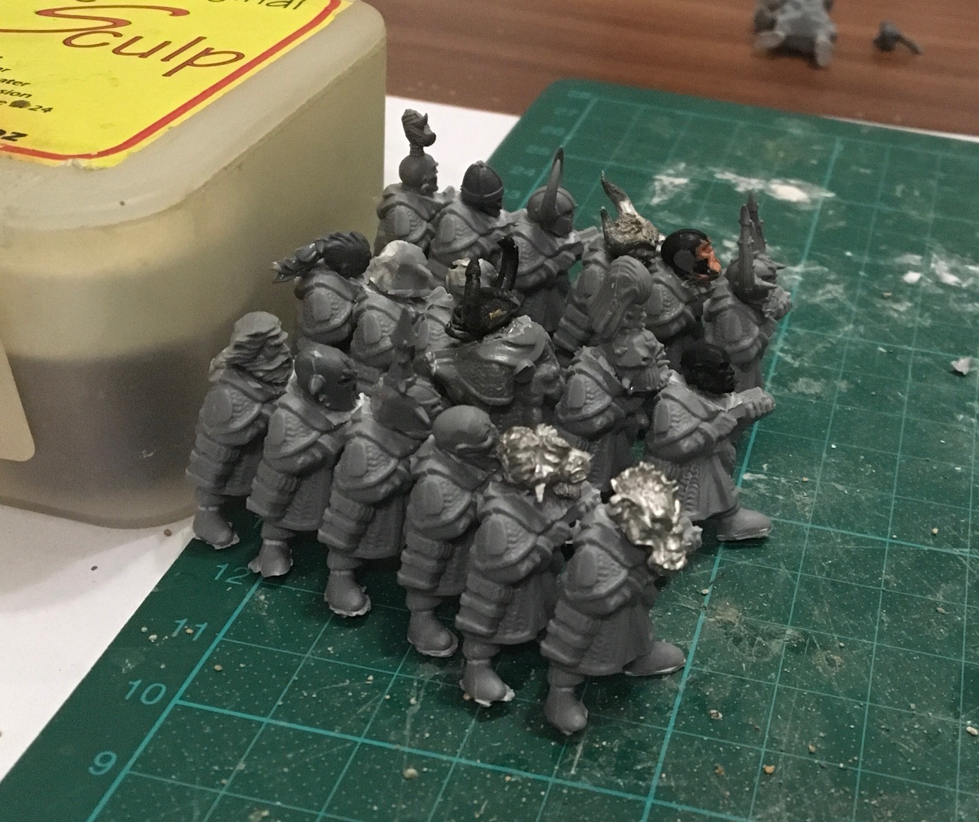 Ich habe auch die vergangene Woche Chaoszwerge mit Donnerbüchsen gebastelt. Ich hatte noch 26 Zwerge von em4 mit Armbrüsten, und wusste nicht was ich damit machen soll. Meine Bitsbox ist damit praktisch leer was ganze Modelle betrifft, ich denke also, dass das mein letztes Regiment auf Einheitsbase sein wird 😊