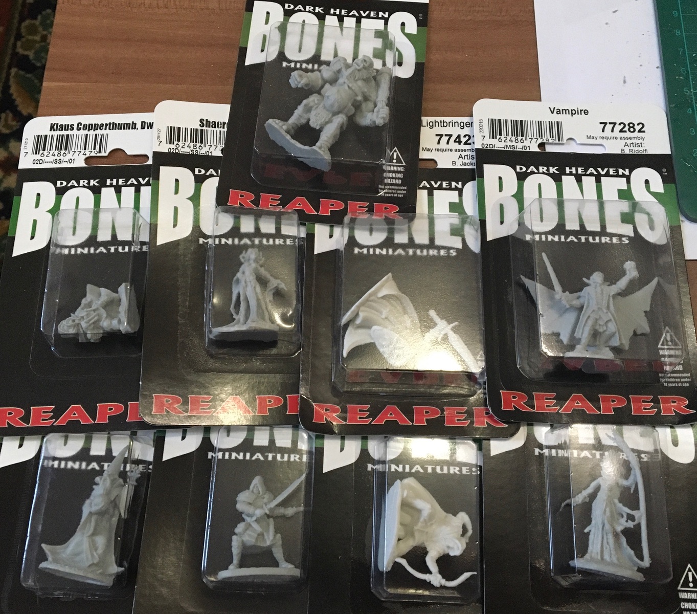 Ich hab heute ein kleineres Paket erhalten. Der größere Pack an Einzelminiaturen kommt in mein Talisman als optionale Spielfiguren.