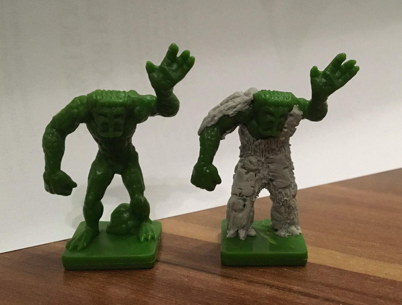 Ich hab hier diese total hässlichen DnD Miniaturen rumliegen, also dachte ich mir, ich probier die neue Modelliermasse aus! Wer will raten was es wird? Oder wer kann mir sagen, was das grüne Ding eigentlich sein sollte. Ein Troll? 😄