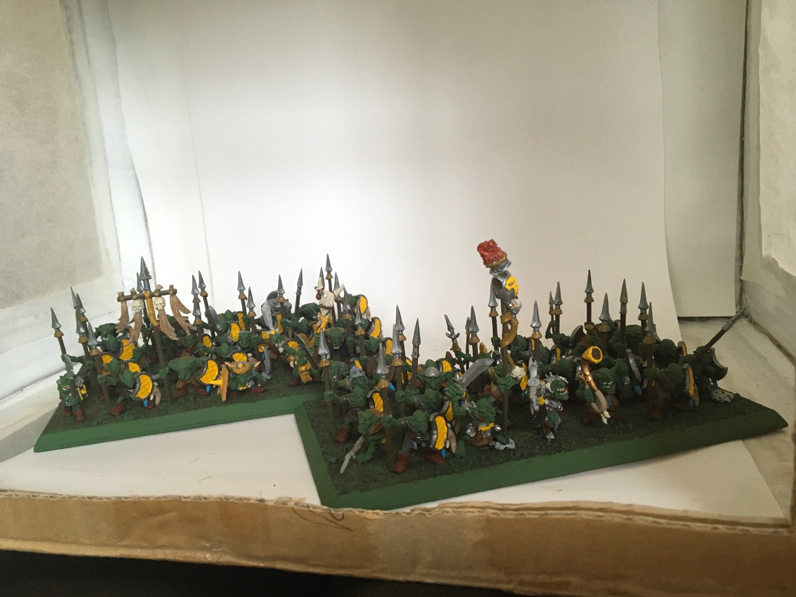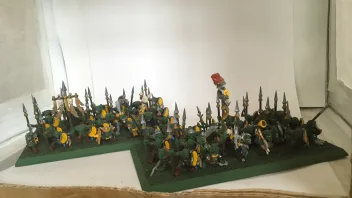 • Kleines Updates der letzten Woche: ich hab meine 7 Goblin Speerträger Regimenter fertig bemalt! Sie waren schon teilweise bemalt, daher kann ich nur sagen ich hab sie zur Hälfte bemalt diese Woche 😄