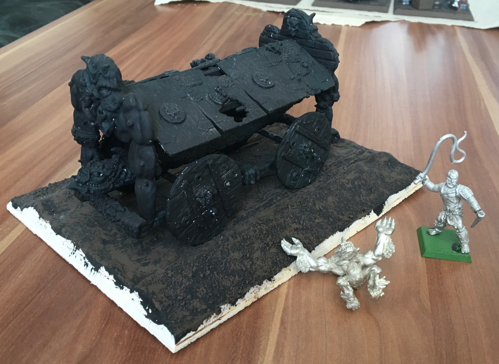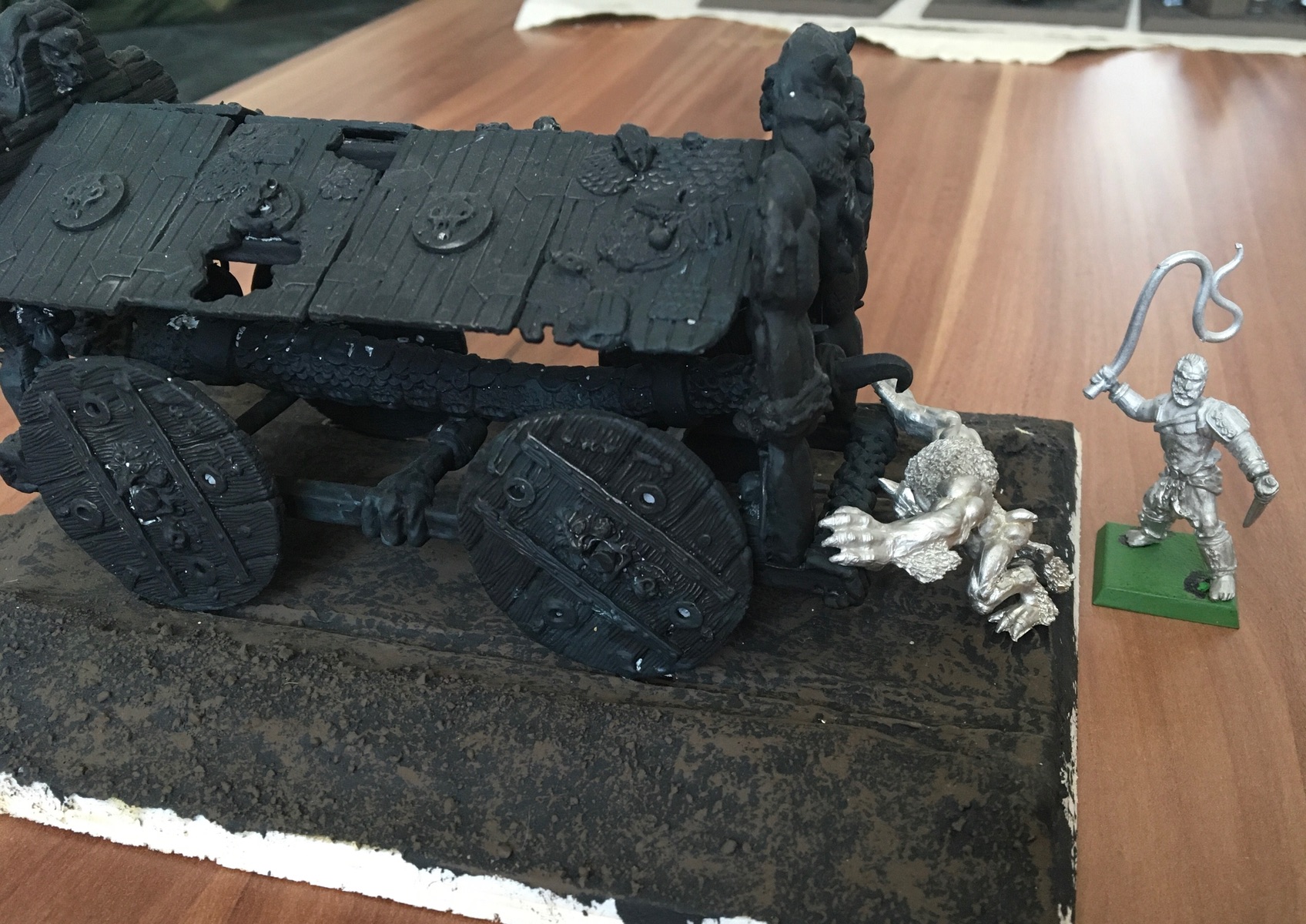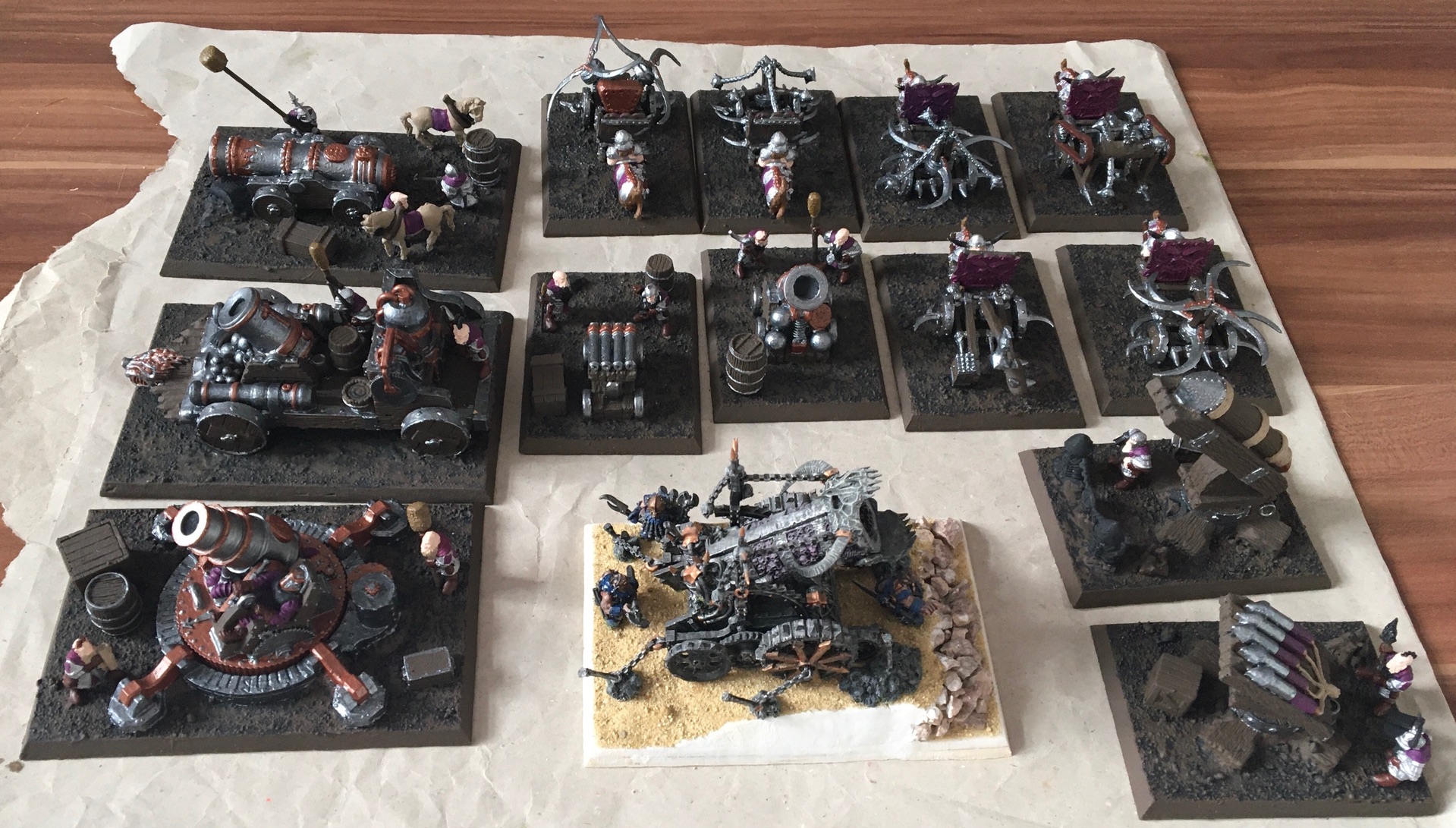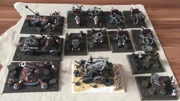 Außerdem baue ich nicht nur meine Armeen. Mein Bruder hat Kinder und kaum Zeit für das Hobby. Ich habe alle seine Miniaturen gebaut, Chaos sogar umgebaut, auf Bases gepappt,… nur damit er sich aufs Spielen und Malen beschränken kann. Es ist ja auch eine immense Aufgabe, allein schon die kleinen Mänchen auf so Bases zu bekommen, oder Dioramabases für Monster zu bauen.