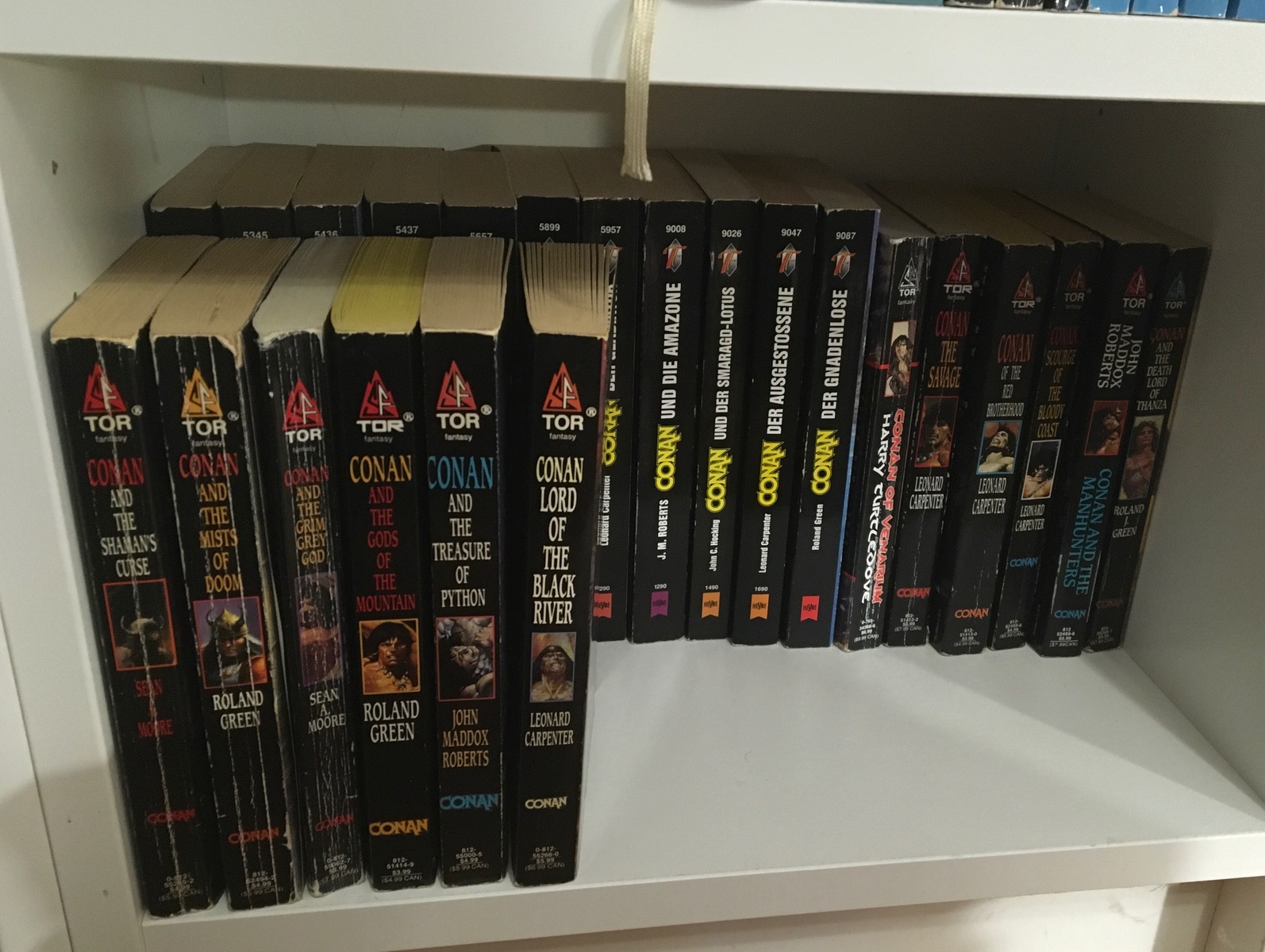 Ich habe jedenfalls alle Übersetzungen von Heyne gesammelt, und das wären: der neu übersetzte braune Sammelband sowie die ursprünglichen Erscheinungen von Howard. Dann die 2 Filmbücher. Den schwarzen Zyklus von Heyne sowie den gelben. Zuletzt habe ich mir aus den USA die nicht übersetzten Bücher in Englisch besorgt.