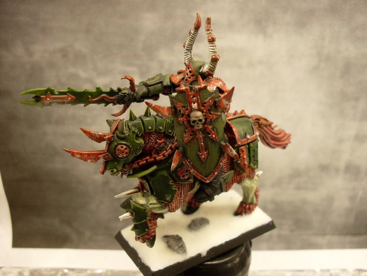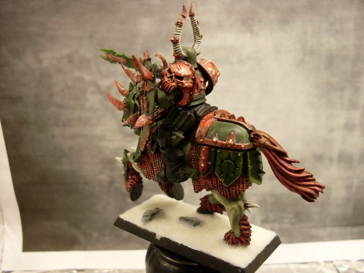 Mir ist der Rosteffekt etwas zu rötlich geworden. Ich arbeite da lieber noch mit Snakebite Leather und benutze statt Blood Red lieber Mechrite Red. Stellenweise tupfen kann besser aussehen als nur trockengebürstet. Allerdings muss ich sagen, dass dir die abschließende Arbeit mit dem Mithril Silver gut gelungen ist. Da hat man sich schnell mal verpatzt.
