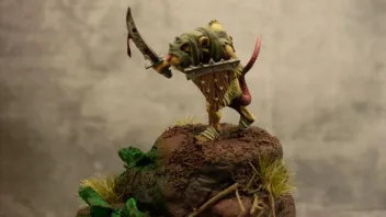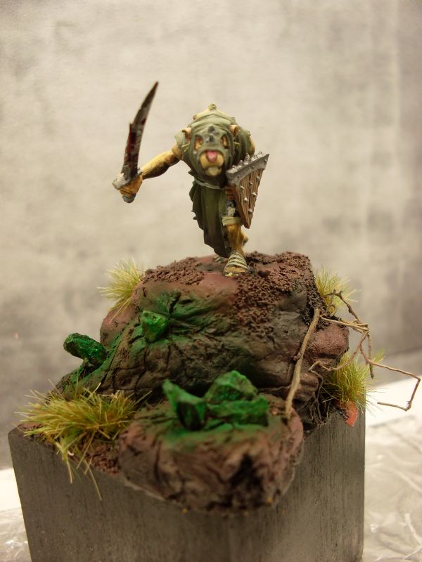 Das ist meine fast fertige Mini, welche auf meinem Workshop nächsten Monat bemalt wird. Hatte am Wochenende generalprobe und das Programm mit nem Freund durchgezogen. Die WUrzeln und die Bandgen müssen noch gemacht werden und der Schild der Ratte sowieso die OSL-Sachen noch aussofnte, Ansonsten fertig.