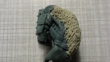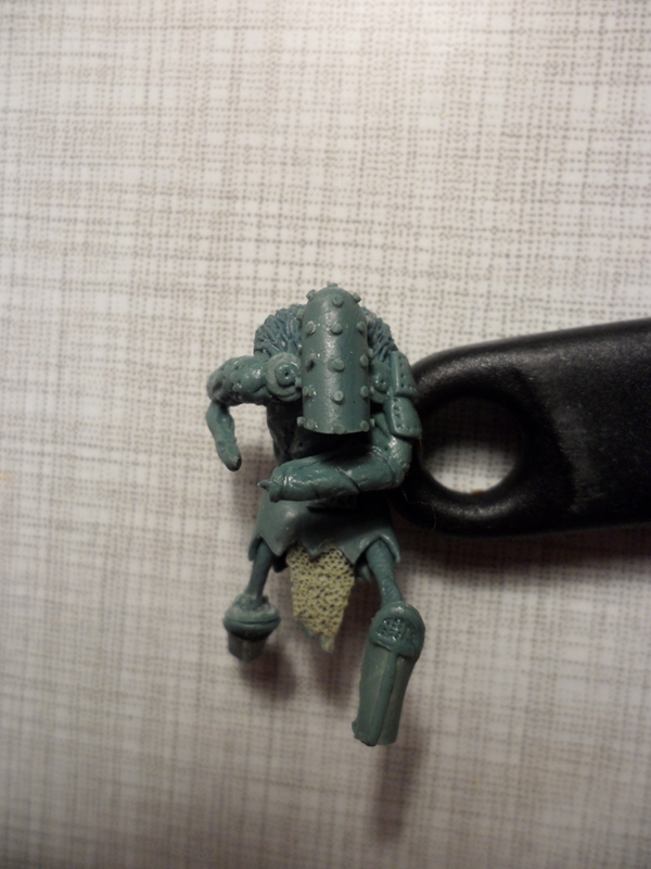 Für die Noppen auf dem Helm hab ich ne dünne GS-Wurst zerschnitten. Was sagt ihr dazu? Ich bin nicht so hundertpro überzeugt...