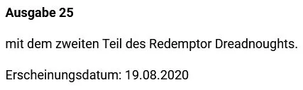 Richtig Merrhok der Redemptor war in Ausgabe 24 und 25 drin und im Link gibt es nur den ersten Teil