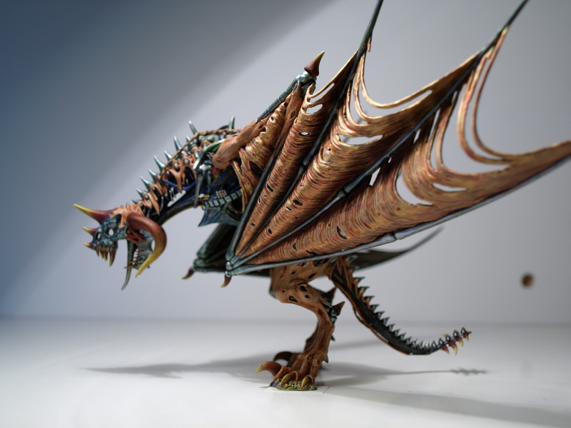 Dein Drache gefällt mir sehr gut, ich weiß allerdings nicht wo ich den einordnen soll - gibt es irgendein 40k Modell das man mit dem darstellen kann, oder ist der jetzt einfach ein Vitrinenmodell? Also als Zombiedrache ist er ja doch eher unpassend ;)