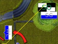 Soweit ich weiß, muss für einen Flankenangriff von uns unser Regiment zu mehr als der Hälfte in der Flanke des Gegners stehen.