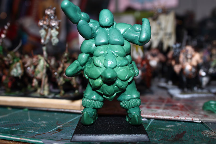 Danach hab ich mich um den Unterkörper gekümmert. Genug Masse aufgebaut und die Hose erkennbar gemacht (auf der Rückseite sogar ganz fertig modelliert und verziert).