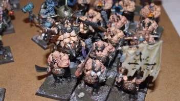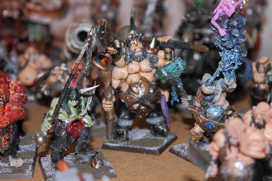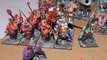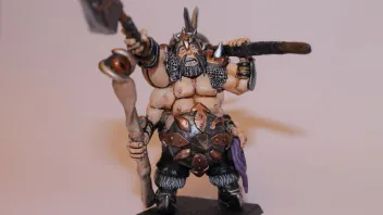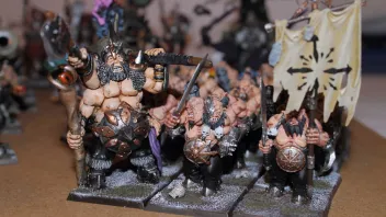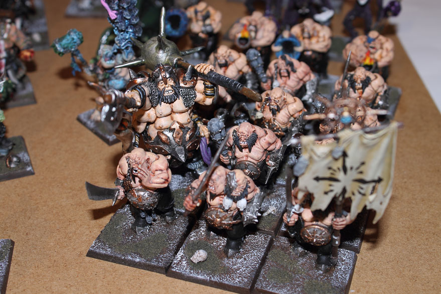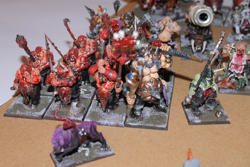 Dann habe ich ihn einmal in den Bullen und einmal in den Eisenwänsten plaziert. Trotz seiner enormen Größe und Waffen kann ich ihn auch problemlos ins zweite Glied stellen. Das einzige, worauf ich achten muss, ist bei den Bullen die Standarte und bei den Eisenwänsten die Position der Waffen des Vorder- und Hinterogers.
