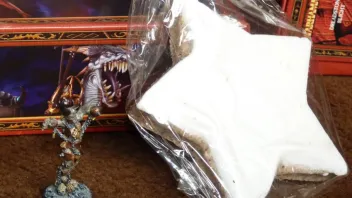 Ich habe einen gar köstlichen (selbstgebackenen?), MEGA-Zimtstern bekommen, den ich auch ganz artig mit meiner Allerliebsten geteilt habe und einen solide bemalten Ketzer (?) aus dem 40k-Universum. Was ich mit letzterem anstelle weiß ich noch nicht so genau (bei ersterem war's einfach! :D), ich schätze er wird auf die eine oder andere Weise seinen Weg in meine Chaosstreitmacht finden.