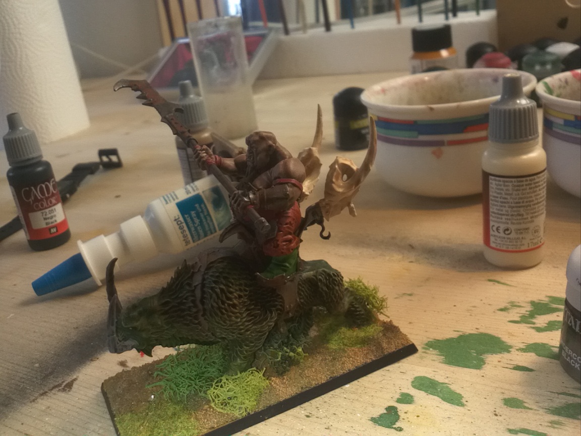 • Hier die WIP-Bilder meines ersten Trauerfangs + Reiter, den ich heute zusammen und schon mit Liquid Green Stuff bearbeitet habe.