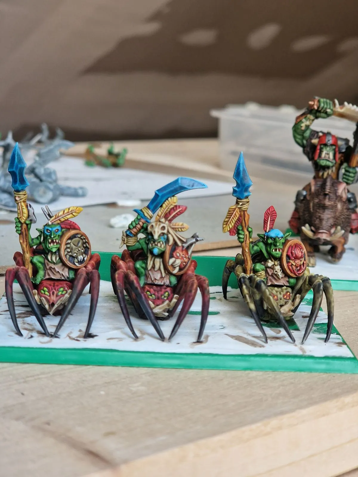 Hallo Bebop, ich begrüße dich hier auch herzlich und finde es toll, das du einen Wiedereinstieg in dieses Hobby wagst, man wird da ja doch ab und an komisch angesehen von Freunden, aber lass dir sagen, es ist und bleibt einfach eine Freude. Anhand deiner Bilder muß ich sagen, dass das Gemalte doch schon sehr sehr gut aussieht, saubere Übergänge, dann auch noch gleich an die schwierige Farbe gelb getraut ( Respekt) also weiter so. Auch deine Goblins Spinnenreiter sehen echt schick aus. Pass nur auf, das du vorher die Grate richtig entfernst, sonst sieht man so eine doofe Kante. Die treten nämlich hervor, wenn man die Figuren bemalt. Ansonsten scheinst du da auf einem guten Niveau zu sein, ich kann dir sehr bei YT Squidmar Miniatures empfehlen, ist ein Schwede der sehr gut verständliches Englisch spricht und einen tollen Malstil hat ( in meinen Augen zumindest, jeder mag da ja was anderes).