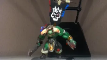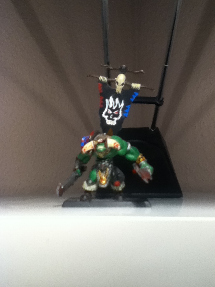 Würde sagen ist ein Eigenbau ! Würde sagen ein Ork-Kopf in einem Ork-Wildschweinreiterkopf geklebt. Die Waffenarme sehen mir nach Armen der Ogerfleischer aus. Rest habe ich keine Ahnung !