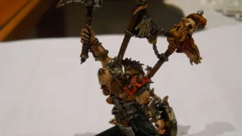 Ich habe mir dieses Modell von Avatars of war besorgt und es so gut ich kann bemalt. Dieser Kriegsherr soll das Prunkstück meiner Armee werden und ich finde ihn noch zu monoton. Ich denke die Schulterplatten werde ich noch mal (sehr dünn/trocken) mit boltgun brushen, um den Metalluntergrund herauszuheben und Gebrauchsspuren zu simulieren. Aber sonst fällt mir nicht mehr viel ein. Hat Jemand ein paar Tips bzw. Vorschläge zur Verbesserung?