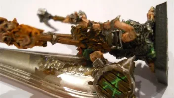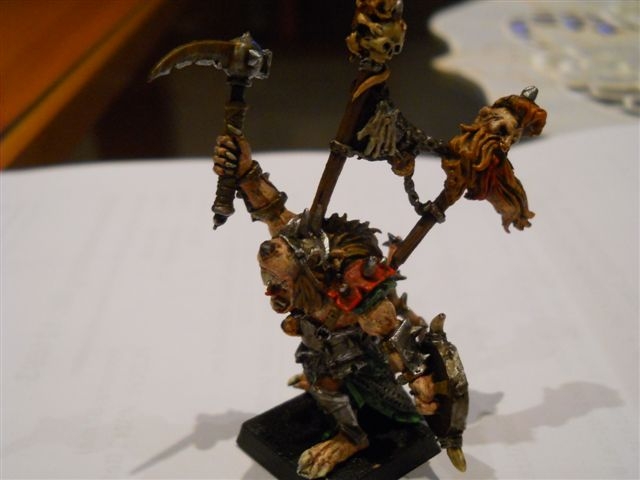 Und jedesmal hab ich es wieder eingepackt, weil mir keine zündende Idee kam, wie es einerseits zu einem Glanzstück wird, andererseits sein Skavisch verschmutztes Aussehen behält. Das ist für Skaven (und andere 'schmutzige') Armeen imho ein anderes grundsätzliches Problem: Die Helden sollen herausstechen und strahlen, dabei aber dreckig und passend zu dem Rest wirken. Ich behaupte jetzt einfach mal, dass dies minstestens ebenso schwierig ist, wie einen super-sauberen Hochelfen-Strahlemann hinzubekommen, da der gleiche Level an kreativ-künstlerischem wie handwerklichem Können abverlangt wird.