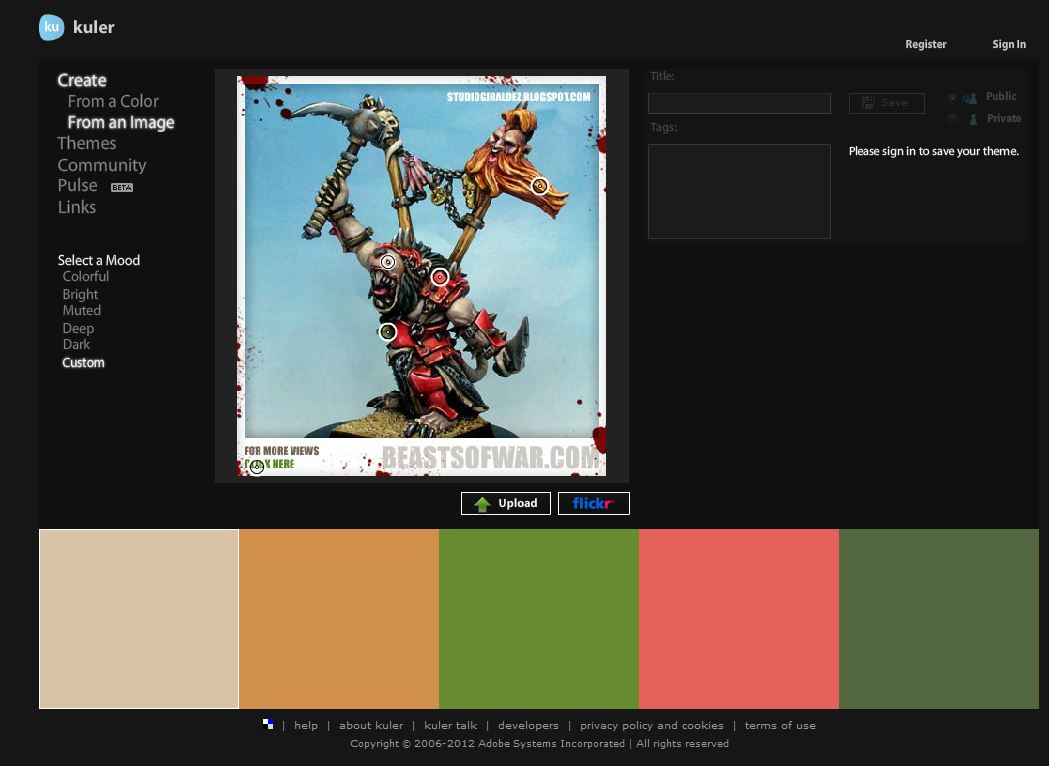 Als Werkzeug für die Gestaltung von Farbharmonien kann ich Dir kuler empfehlen, wo man (siehe Anhang) auch bemalte Modelle Analysieren lassen kann.