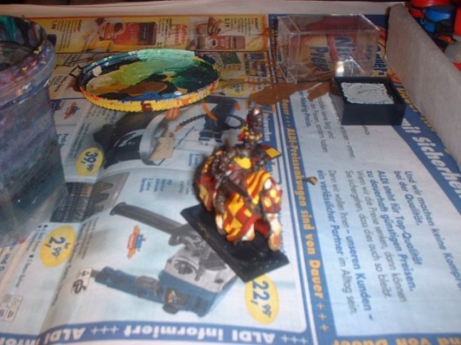 • So - hier mal ein Bild - wenn auch nicht vom "fertigen" Ritter meinerseits, aber "unterwegs" geknipst - den Zustand hatte er, als n Freund mit Digicam grad mal da war. der hat einfach an meiner Malstelle rumgeknipst... das hier ist vor der Endmontage, der Ritter sitzt jetzt doch etwas anders drauf, aber man erkennt ungefähr, worauf es hinausläuft.
