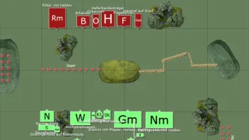 Seine gesamte Armee orientiert sich ansonsten nach rechts, außer den Rittern die am Wald verweilen.
