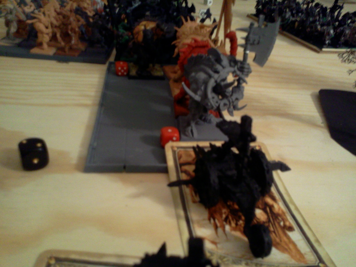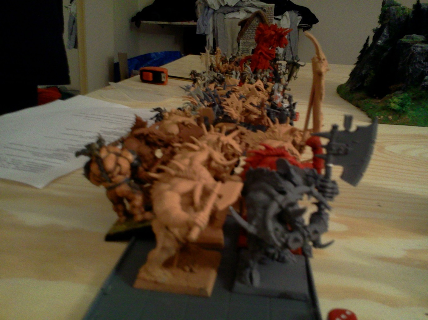 Daneben krachen die Wildorks mit Gebrüll in die aufgerückten Bestigors mit dem Lvl 4 Schatenschamanen.