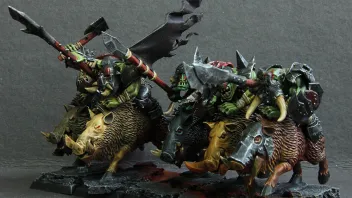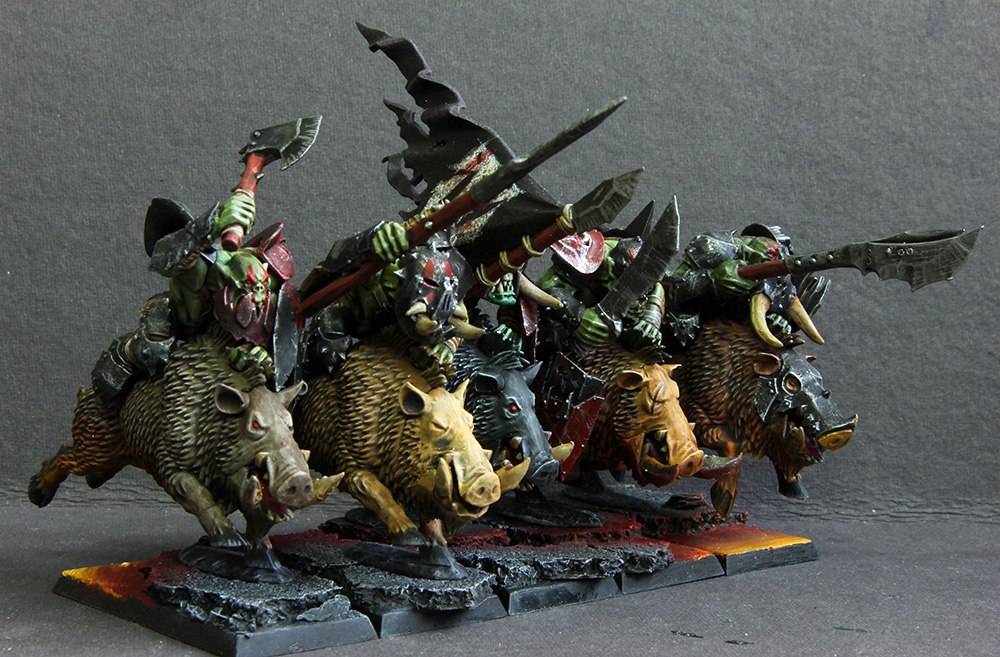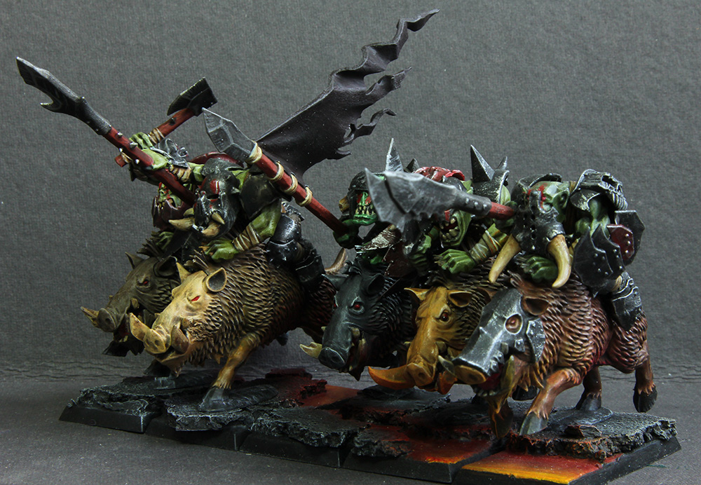 Goblin-Waaaghboss, Upgrade zum Nachtgoblin, Zhw, l.Rüst., Großer Höhlensquig - 104 Pkt.Goblinschamane, Upgrade zum Nachtgoblin, St.2, Bannrolle, Kleiner Waaagh! - 110 Pkt.