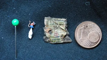 Zwecks Größenvergleich hab ich die beiden Bastelleien neben einem handesüblichen Stecknadelkopf und einer 1Cent Münze abgelichtet.