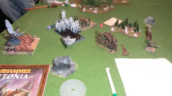 besondere Geländestücke (zufällig bestimmt), sowie einen Magischen Gegenstand