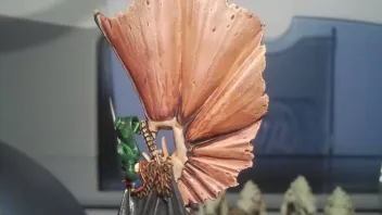 • Ja, die Farbe des Flügels ist sehr "hautig" (Germanistikstudent - ich darf neologismisieren :P). Ich hatte den Flügel vorher etwas dunkler durch ein Lila-Wash; das war mir dann aber doch zu dunkel. Bin eigentlich ganz zufrieden.