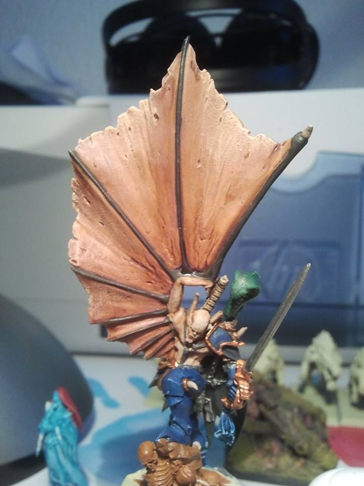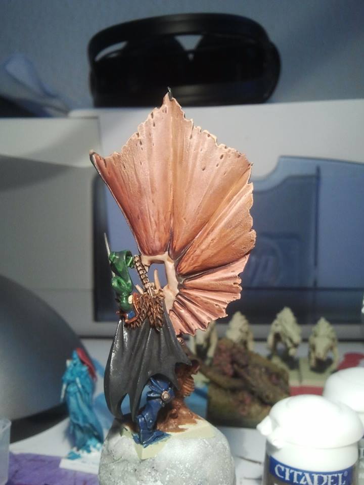 Ja, die Farbe des Flügels ist sehr "hautig" (Germanistikstudent - ich darf neologismisieren :P). Ich hatte den Flügel vorher etwas dunkler durch ein Lila-Wash; das war mir dann aber doch zu dunkel. Bin eigentlich ganz zufrieden.