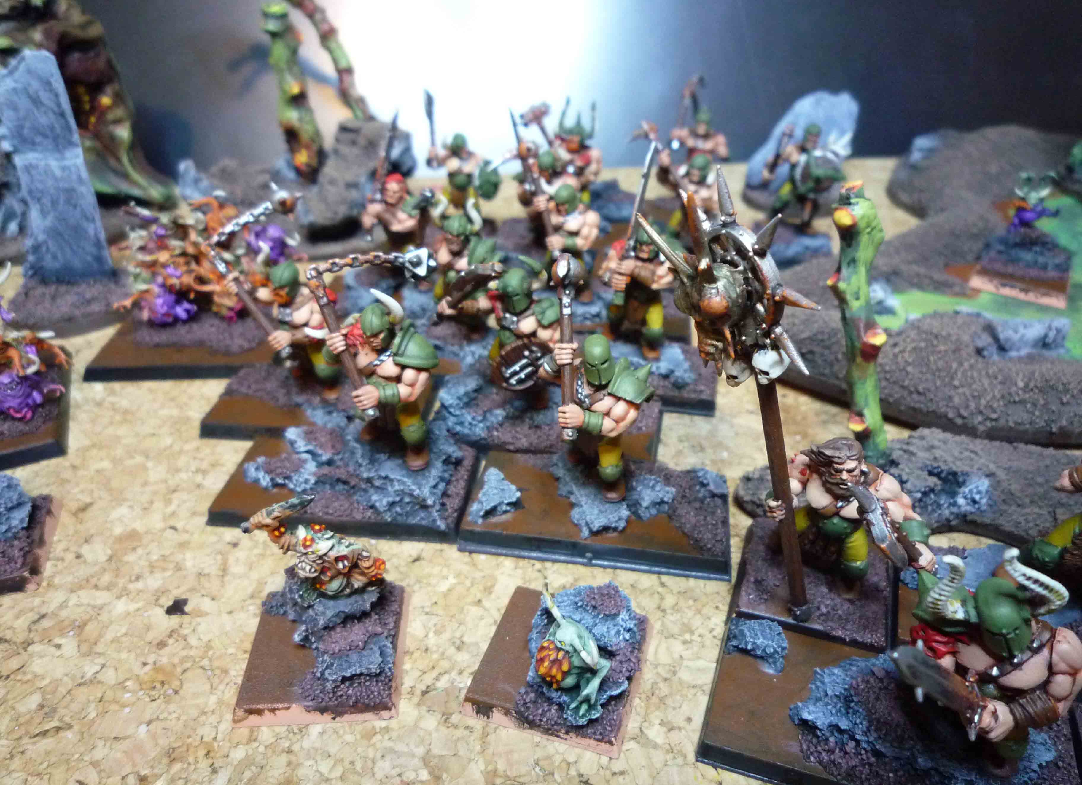 Die Musiker werd ich aus den normalen Barbaren basteln (oder gibts da tolle Modelle für?).Die Nurglingbases in der Armee sind mit drei unterschiedlichen Nurglingeditionen bestückt (auf den Fotos der Krieger könnt ihr noch welche finden