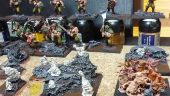Ich finde es auch sehr interessant wie sich gewisse Einheiten/ Modelle, in ihrem Aussehen, verändert haben und dies in der Armee darstellen zu können.Wie Ihr auf den Fotos sehen könnt bastle ich nebenbei auch noch an thematischem Gelände für den Barbarenstamm.