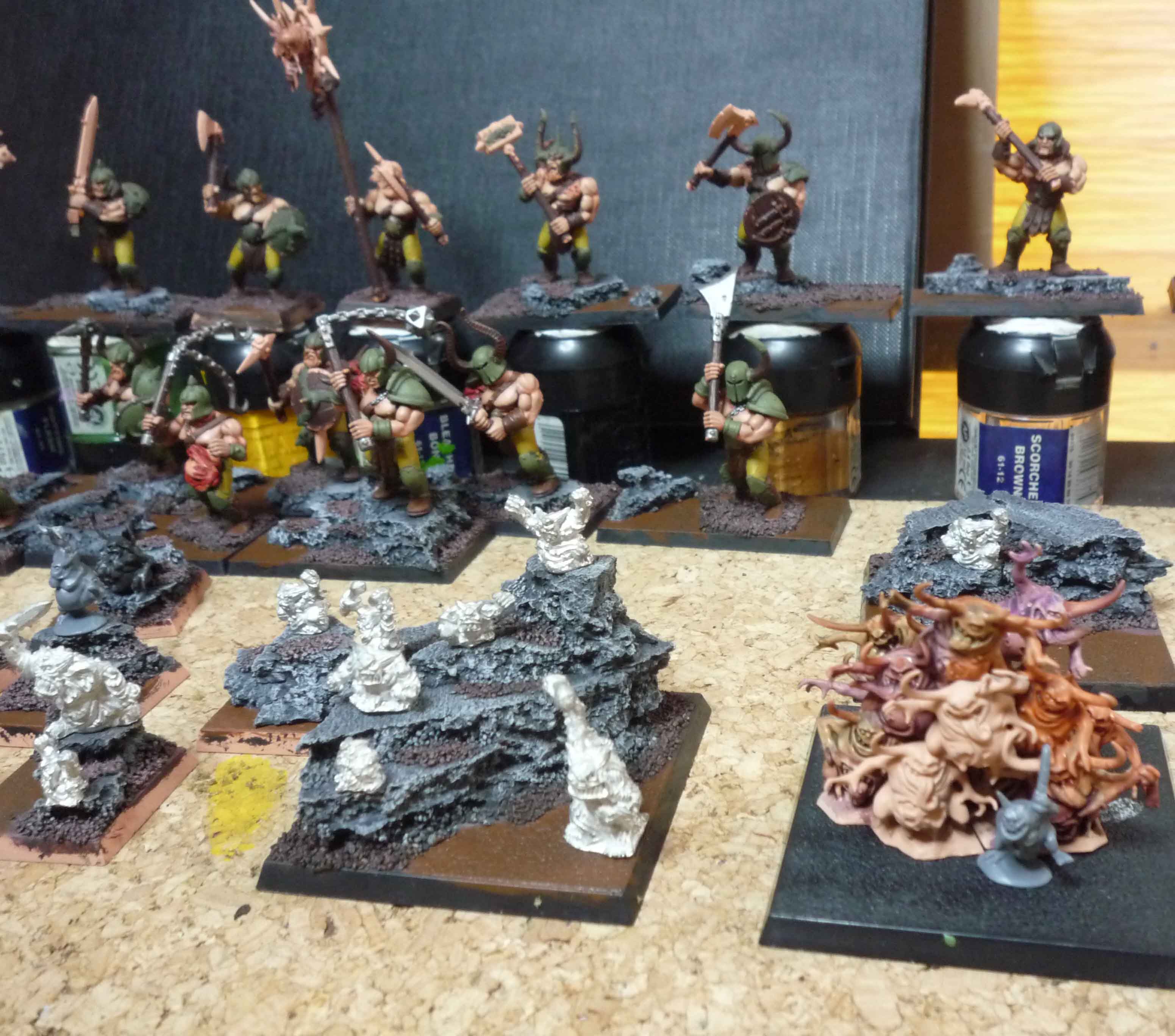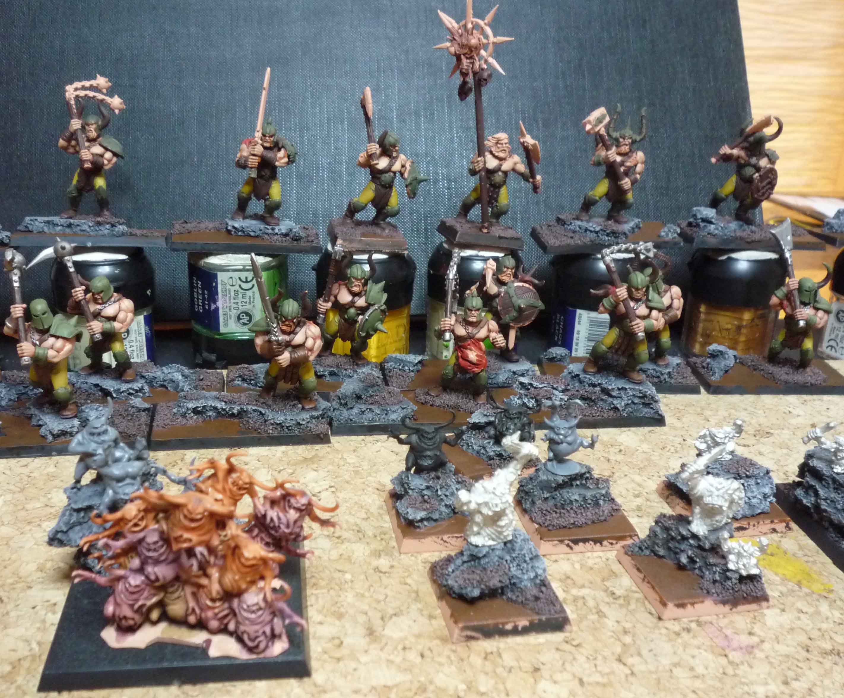 Die Musiker werd ich aus den normalen Barbaren basteln (oder gibts da tolle Modelle für?).Die Nurglingbases in der Armee sind mit drei unterschiedlichen Nurglingeditionen bestückt (auf den Fotos der Krieger könnt ihr noch welche finden