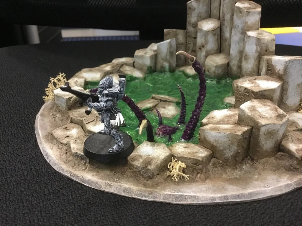 Der Verwitterungseffekt ist dir gut gelungen. Setzt du das Modell noch auf eine Base?