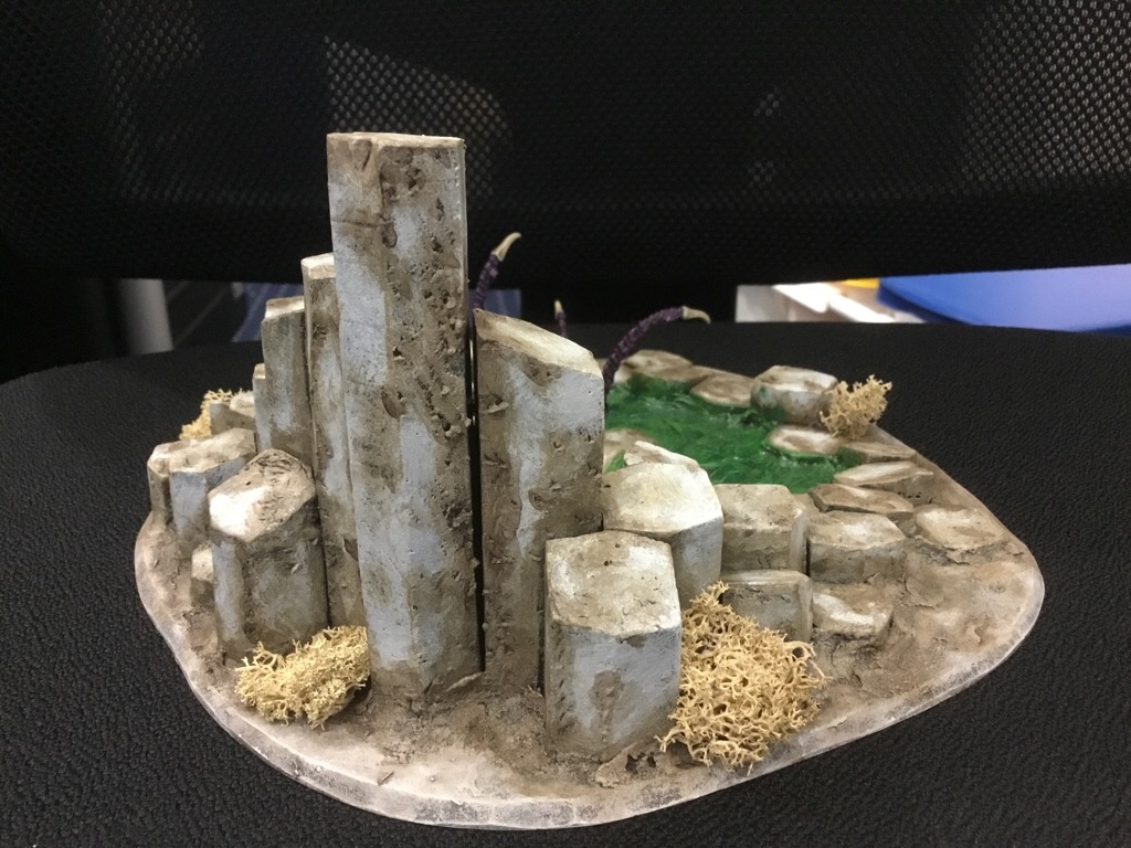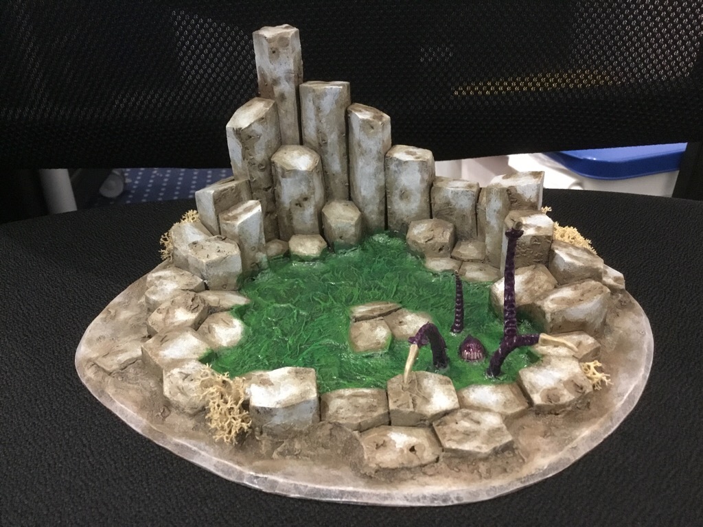 Schnell und einfach. Aus Syrodur, mit etwas Sand und Kork. Dazu noch ein paar Farben und Grasstreu. Und schon ist er fertig. :)