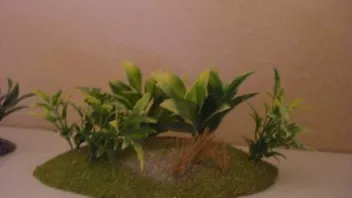 bäume: man nehme ein paar zahnstoch klebe sie aneindander so das so verzweigt sind dann rupft man moos aus der erde und klebt es an die vorherangefertigten bäume fertig is der baum