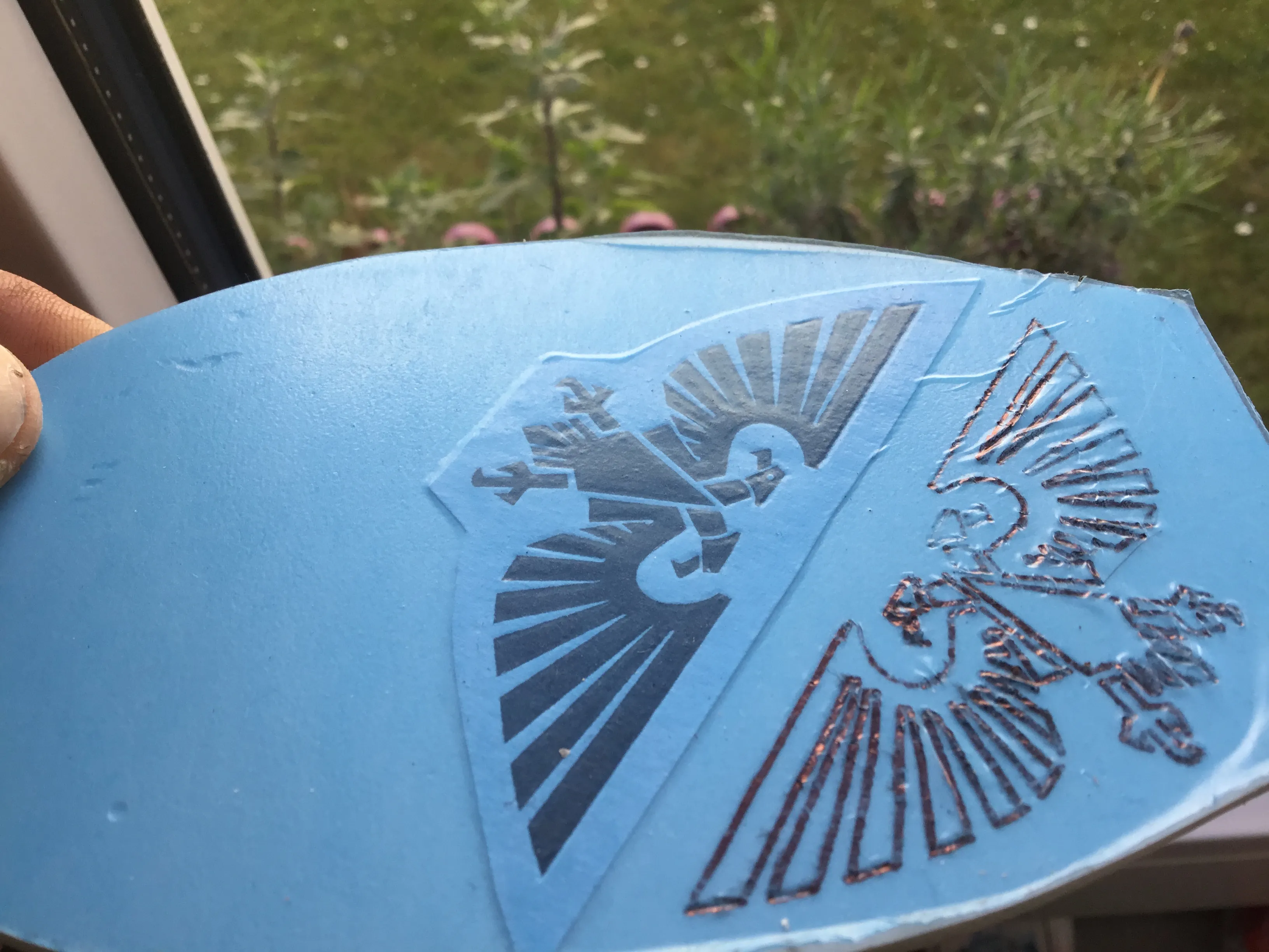 Ebenfalls Hartschaumplatte, wenn man etwas vorgefertigtes / Gedrucktes auf der Platte fixiert und bspw. mit nem Kugelschreiber kräftig nachfährt, kann man auch komplexe Muster zügig zum Relief machen.