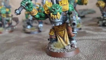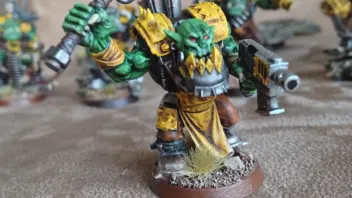Gelb scheint wohl die neue Modefarbe bei den Orks zu sein. Die White Dwarfs sind auch voll davon. Dein "dreckiges" Gelb gefällt mir auf jeden Fall gut.