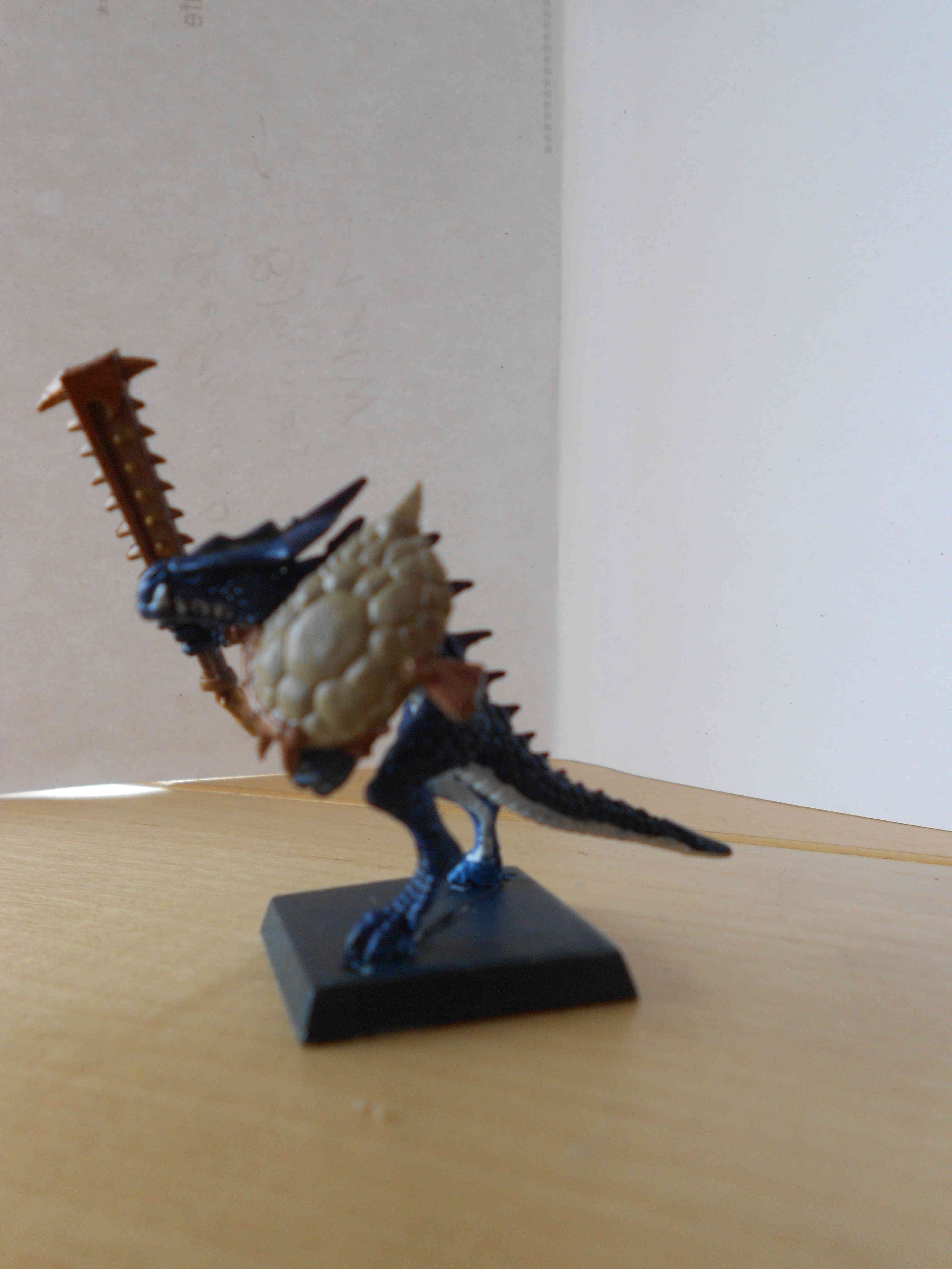 Zum Farbschema: Ich habe lange hin und her überlegt und jetzt wird es langweilig: Ich nehme das offizielle blaue Grundschema. Warum? Nun einerseits gefällt es mir zunehmend gut, während die anderen Ideen (v.a. sumpfig grün) mir zwar im Einzelfall gefallen, aber als Armee irgendwie weniger. Andererseits habe ich im Internet einige gute Tutorials gefunden und diese machen die Echsen ebenfalls blau. Insofern erhoffe ich mir, dass es meine ersten Malschritte und Erfahrungen vereinfacht.
