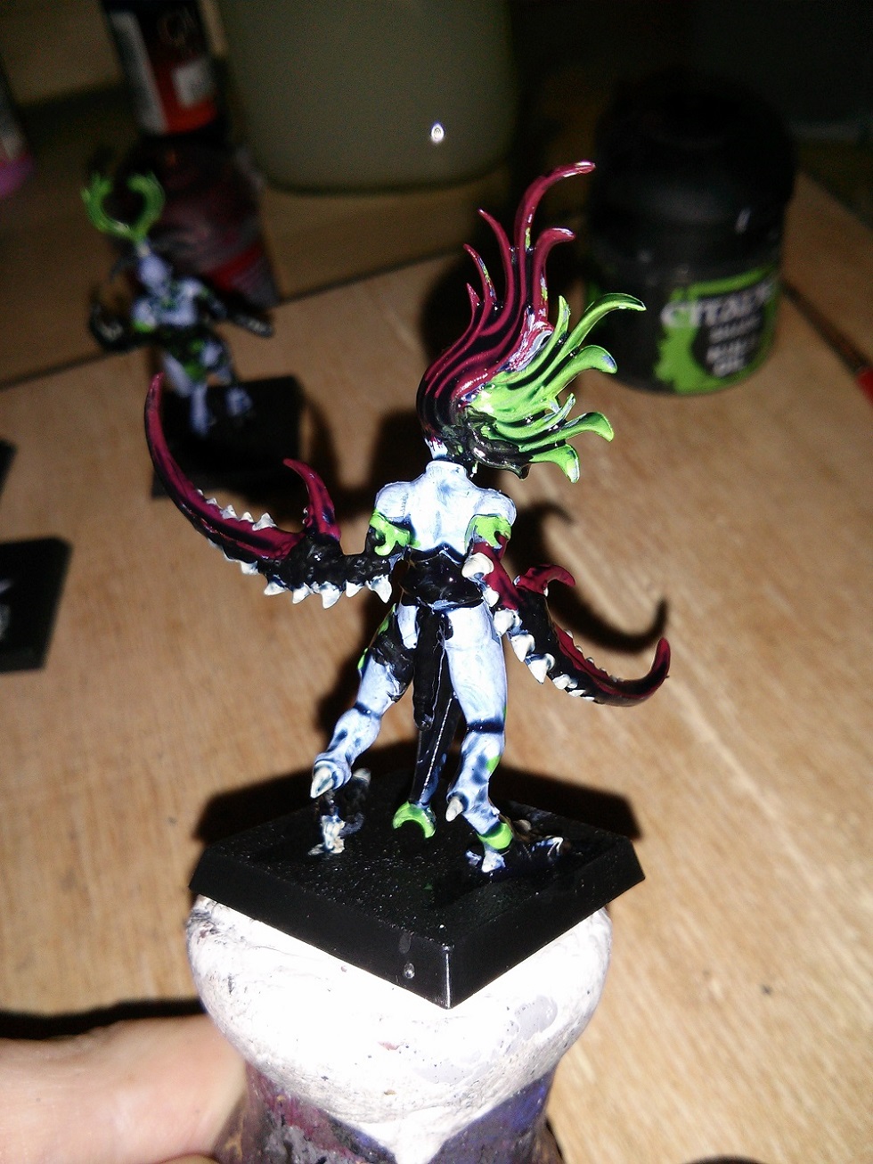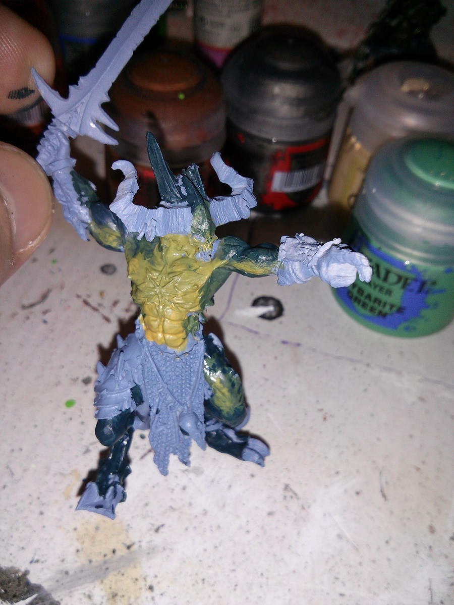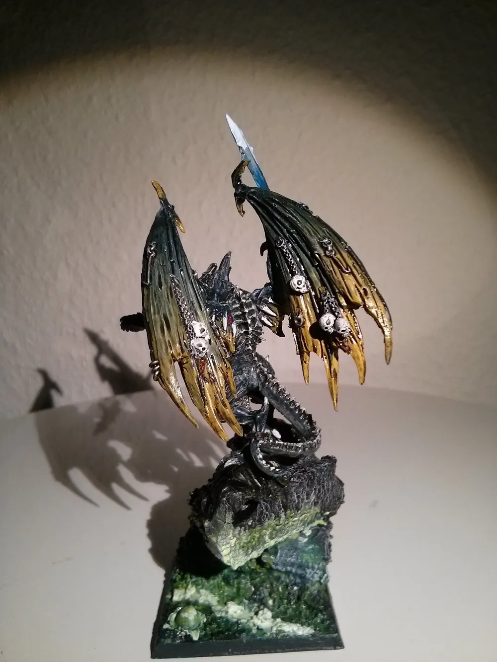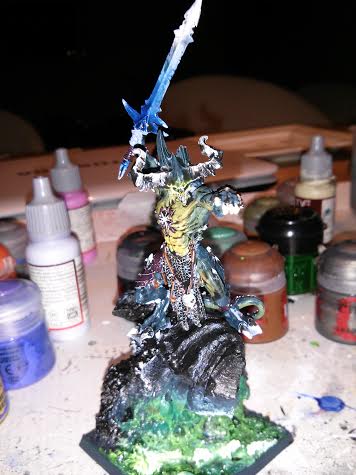 Die Base von Be'Lakor ist noch nicht fertig. Nur das Greenstuff muss härten und Imperial Primer ist ebenfalls noch etwas feucht.