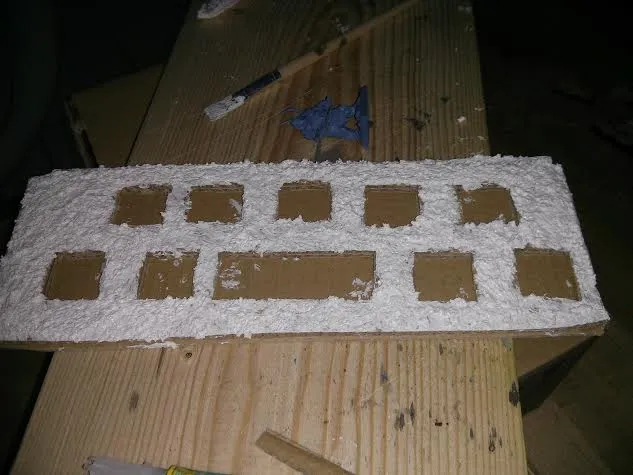 Anschließend einen kleinen Vorpsrung ebenfalls aus Korkrinde befestigt und Grundiert. (schwarz, lässt sich leichter bürsten als Grau, bzw das Ergebnis sieht einfach in meinen Augen besser aus).