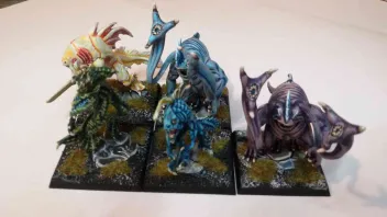 Ahriman Blickte richtete sich geg Süden. Sein Schutzpatron hatte zu ihm gesprochen. Er würde nach Lustria gehen und die armseligen Städte der Slann vernichten, doch zuvor sollte er noch eine wichtige Aufgabe erledigen. Die 4 Großen waren an sich nicht wählerisch was ihre Anhänger anging, doch es gab einen uralten Packt zwischen den finsteren Vier. Keiner von ihnen würd ein Kind der Zerstörung in ihre Anhängerschafft aufnehmen. Jener Champion wiederum, welcher eines dieser Geschöpfe seinen Meister opferte, durfte mit einer großzügigen Belohnung rechnen. Die Champions der Götter mobilisierten ihre Heere. Die Masse überwand den statischen Moment und drängte Richtung Süden wie ein Meer aus reiner Verderbtheit. Es war eine Streitmacht des ungeteilten Chaos, so gewaltig an der Zahl dass sie den Horizont ausfüllte. Dunkle Wolken bedeckten die Heere, als