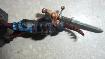 Falls nicht, böte sich eine andere Metalfarbe. Der Stahl kann da aus der Brünierung schauen, oder eine Goldschicht drauf sein. Ich selber finde Gold bei einfachen menschlichen Modellen nicht so prall, aber es geht schon. -