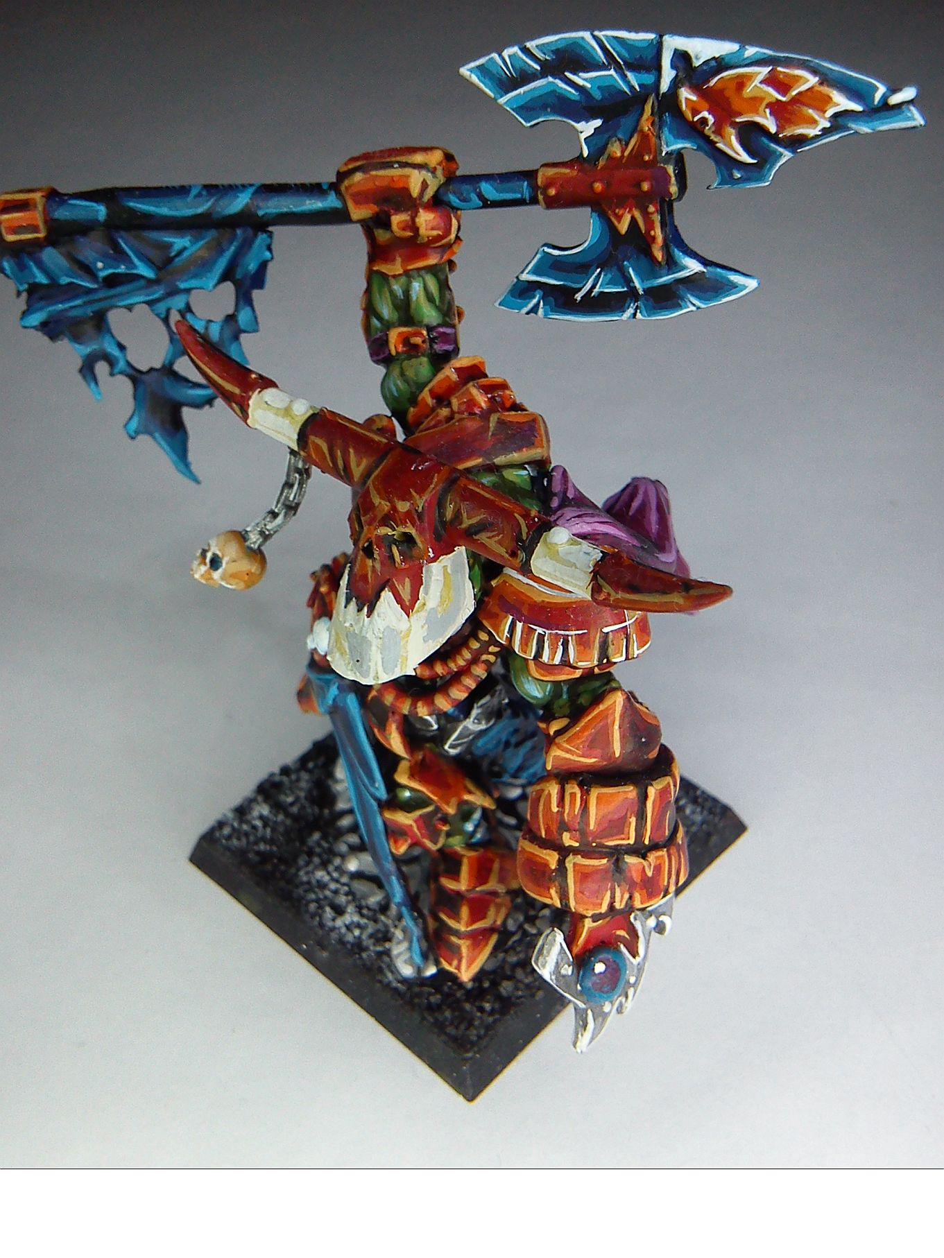Um die neu entstandenen Machtverhältnisse zu definieren äscherte Slug kurzerhand die Hälfte der Jungs ein, besonders schnell traf es die am lautesten lachenden Individuen in dem Mob (Sein Boss Krutnuk musste aus Solidarität natürlich auch dran glauben:D ). Doch auch wenn Heutzutage sich kaum ein Ork traut Slug so zu nennen, so wird hinter seinem Rücken dieser Spitzname oft geflüstert. Da man aber bekanntermaßen nicht mit dem Feuer spielen soll, gibt es immer wieder paar Brandopfer unter den Orks. Seit einiger Zeit begleitet der Rotkäpchnstamm Da Martns Waaagh bei den stetigen Plünderungen in den Sündlanden.